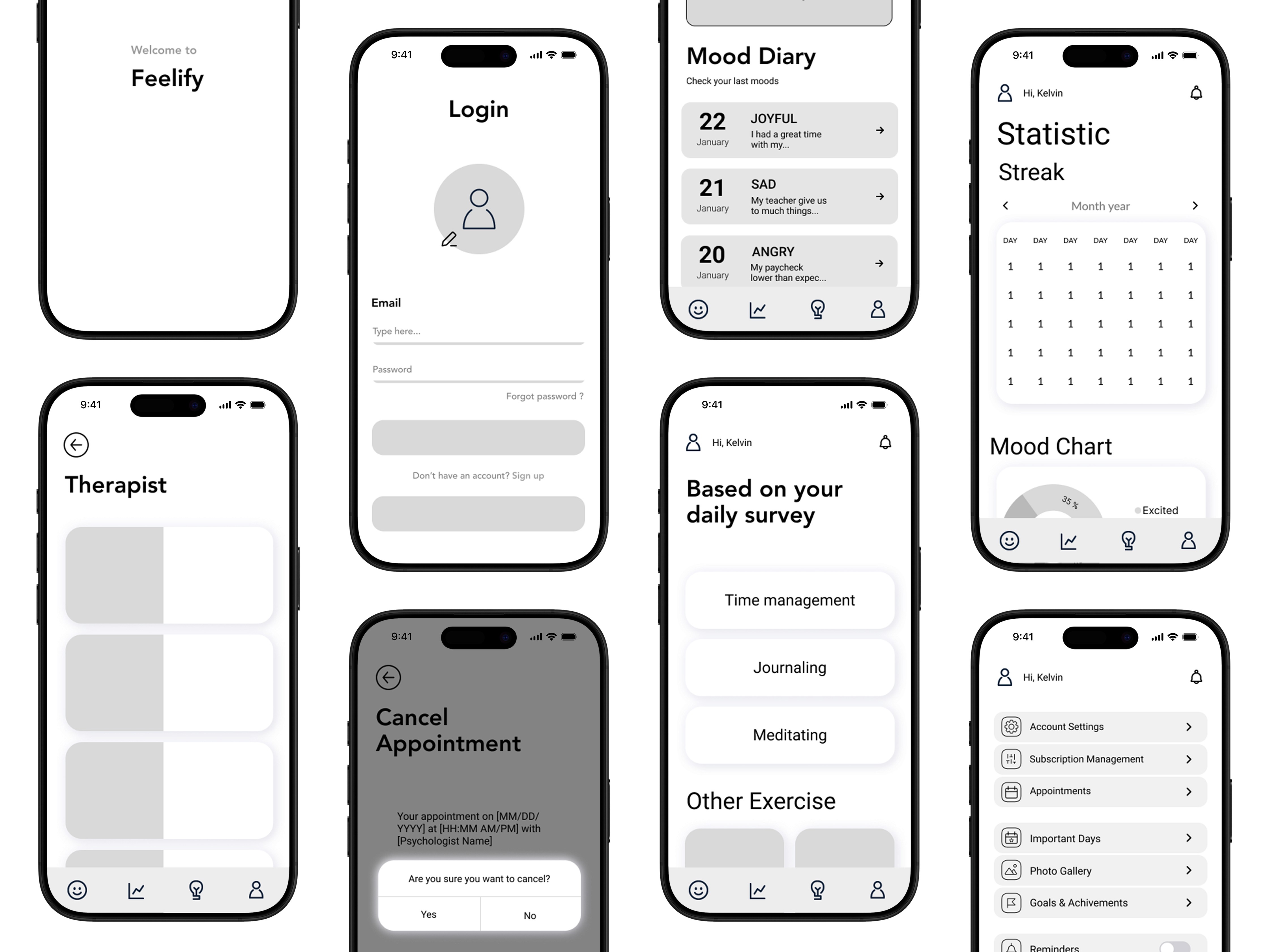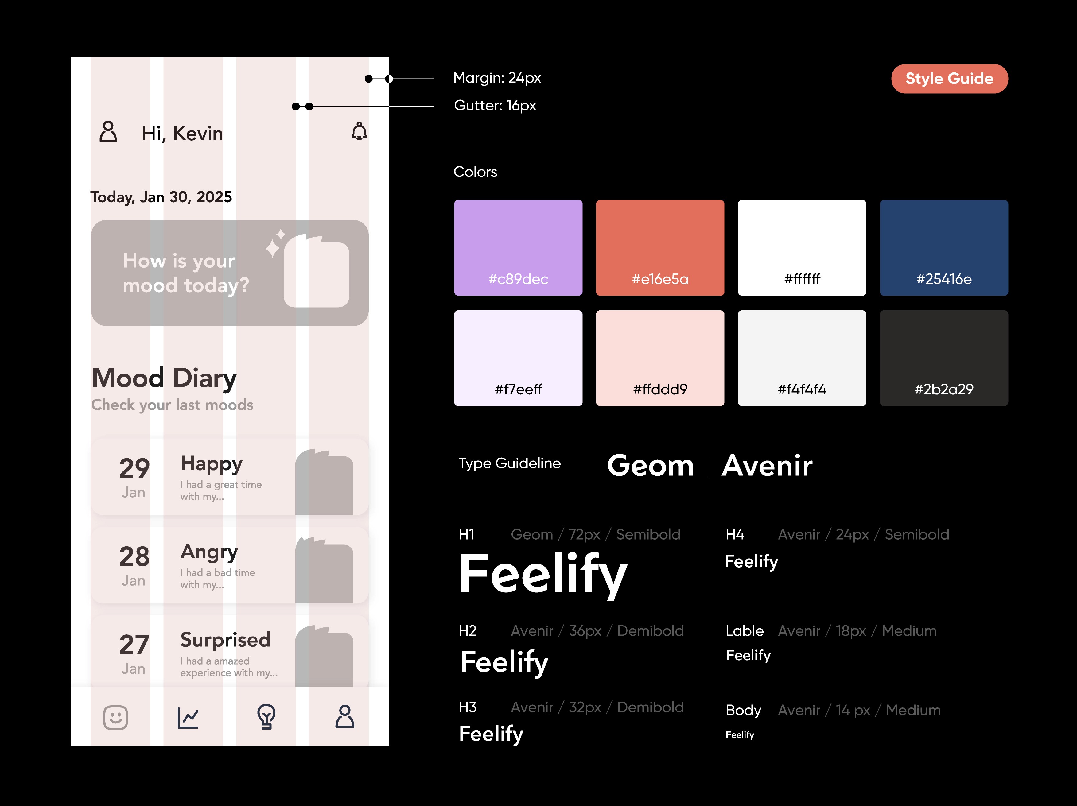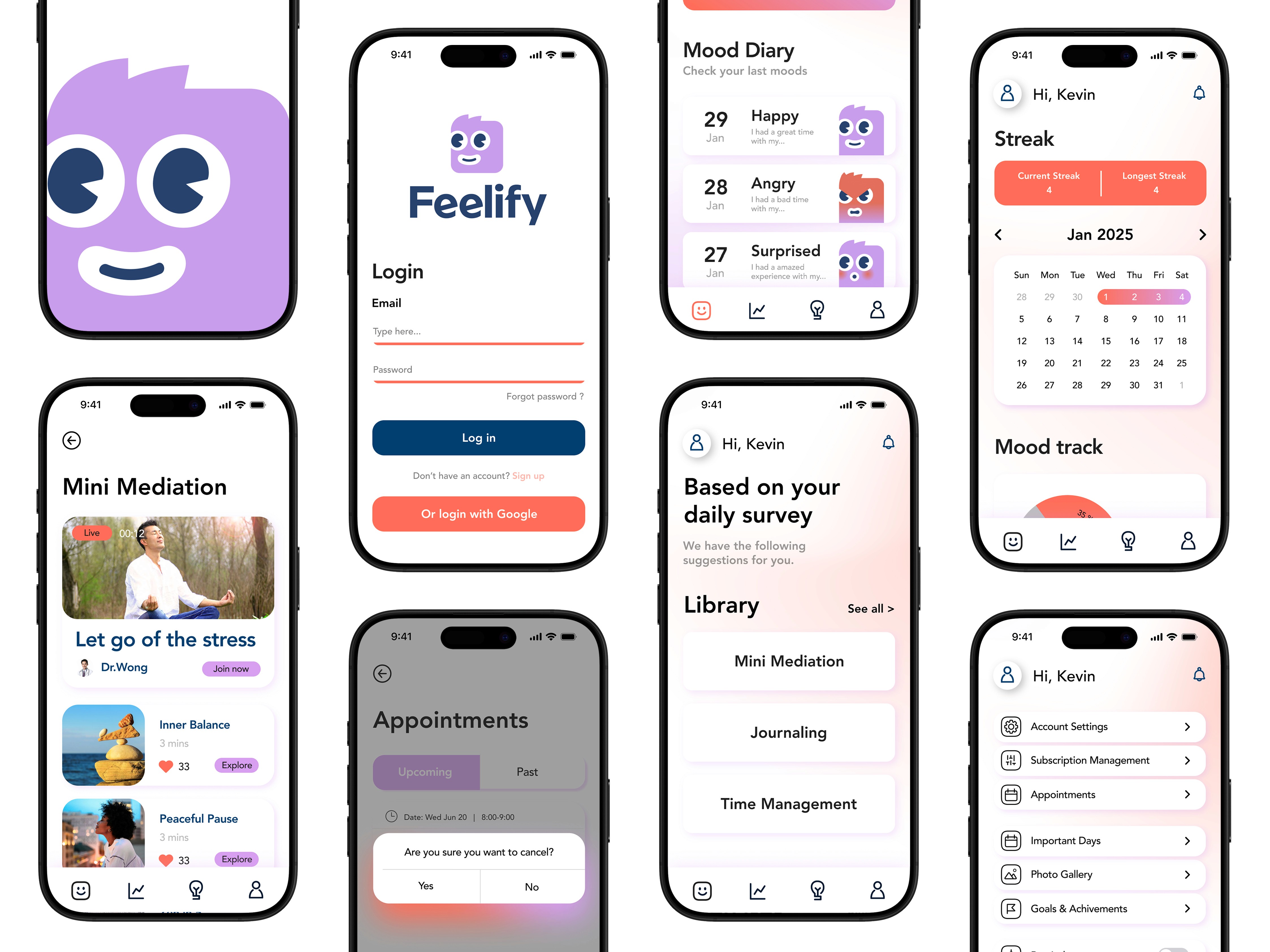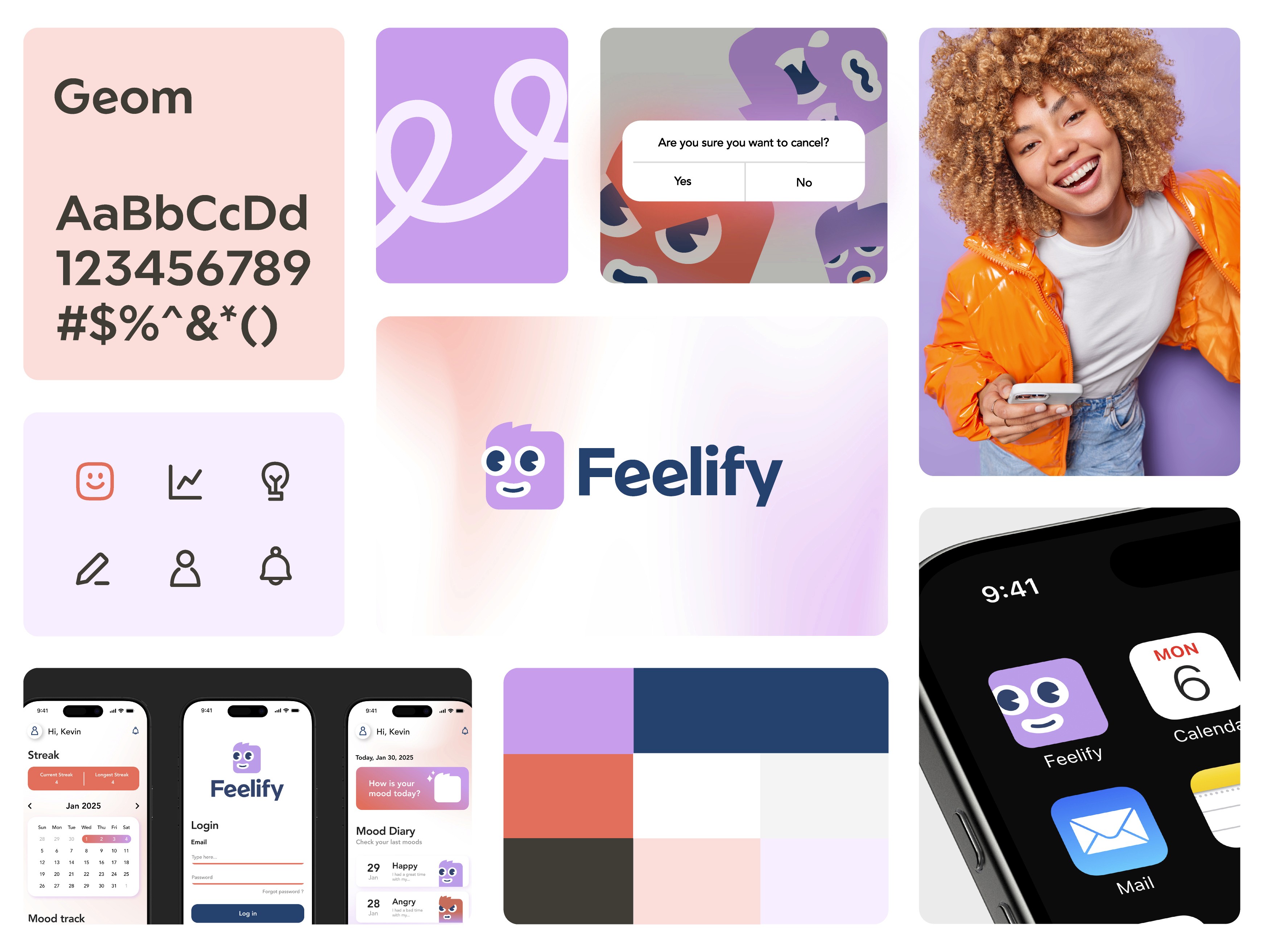 Overall, Feelify’s visual language balances comfort and clarity, which suits a mood-tracking app where consistency and emotional safety matter most.