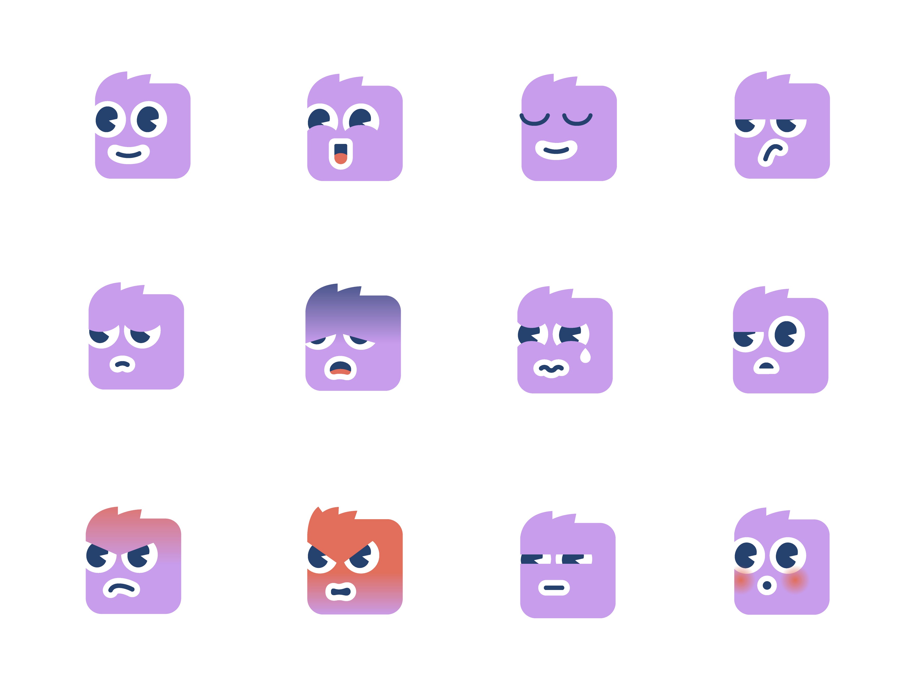 The main brand character is designed with rounded corners and a range of friendly, expressive faces, adding personality while helping users recognize emotions at a glance without heavy or complicated analysis. A soft pastel gradient palette feels gentle on the eyes and stays engaging, avoiding the monotony of plain white. Meanwhile, the typography system is minimal and neutral, keeping the tone nonjudgmental toward the user’s feelings.